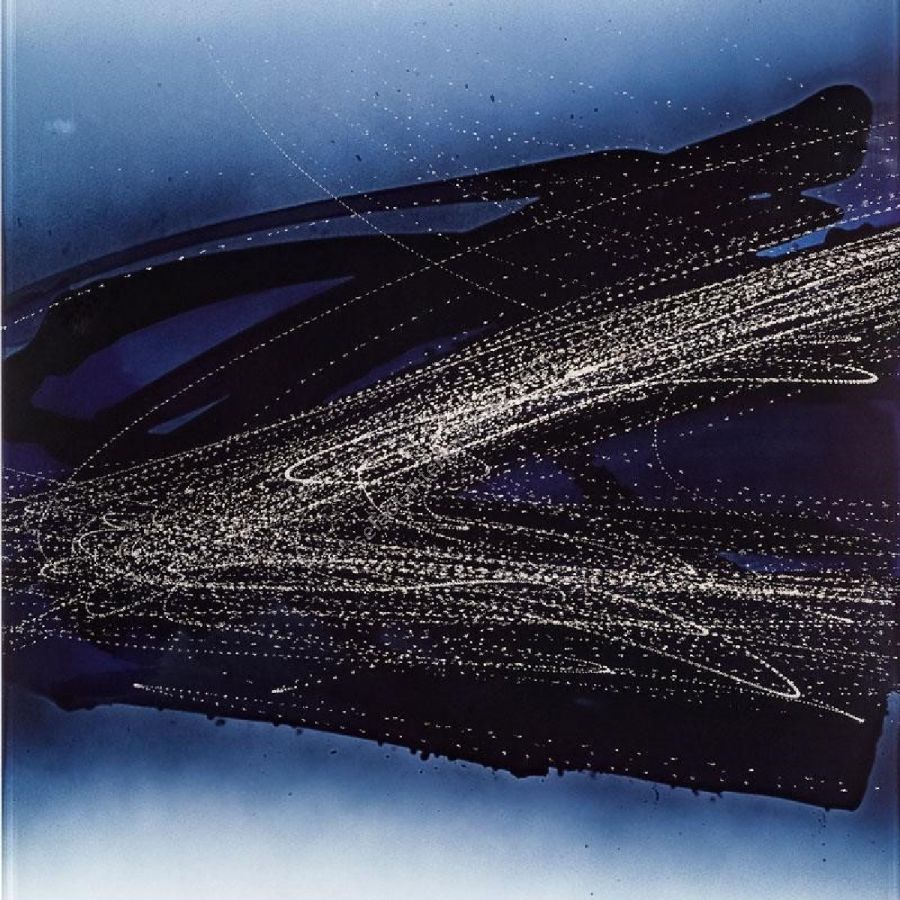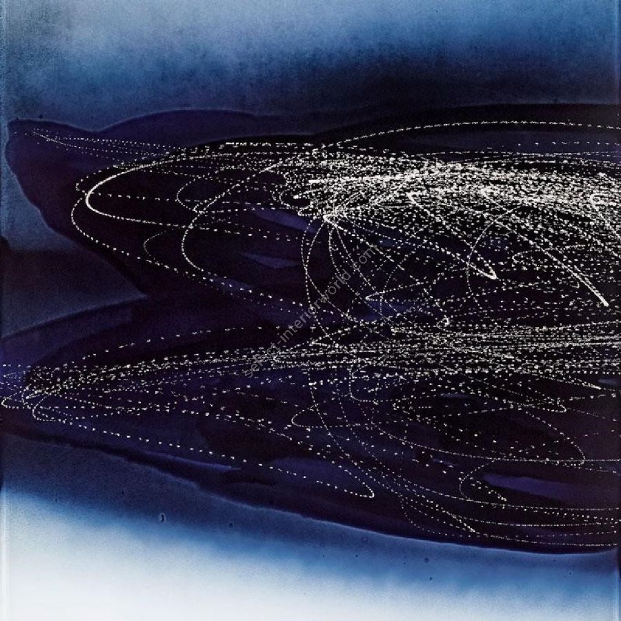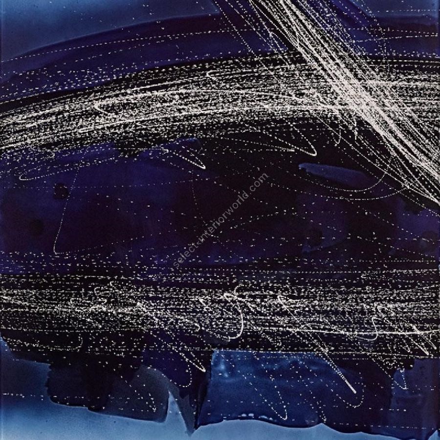 “Storm on the Sea” decor with white, light blue and dark blue varnish hues on a swirling and shiny decorative engraved motif.