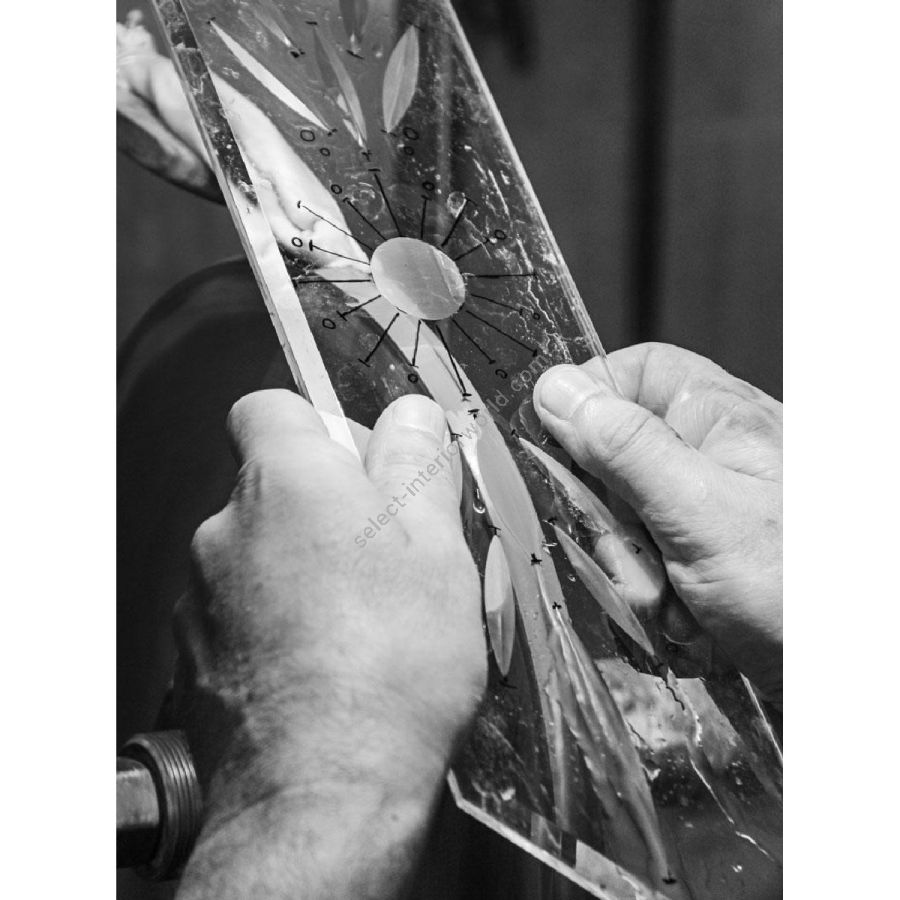 Floral motif engravings. Decorative rosettes and twisted ropes made of crystal coloured Murano glass.