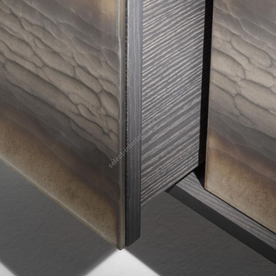 Structure in ash wood with Falò finish. Three drawers with 8 mm thick tempered glass front with Roddi finish; push-pull opening.