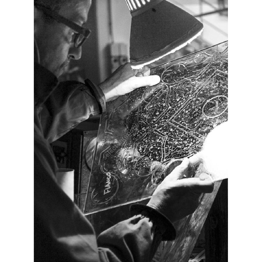 “Sharazad” decor engravings. Decorative rosettes and twisted ropes made of crystal coloured Murano glass.