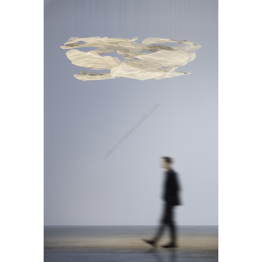 Inspired by the superimposition of clouds and the Atlantic sky, Brétema is a compositional system developed by a·emotional light design team. The interplay of overlapping layers and olumes, combined with a light that bathes the ensemble, allows for unlimited configurations with a high degree of expressiveness. The softness of the shapes and the visual lightness of Brétema bring a unique aesthetic emotion to any space.