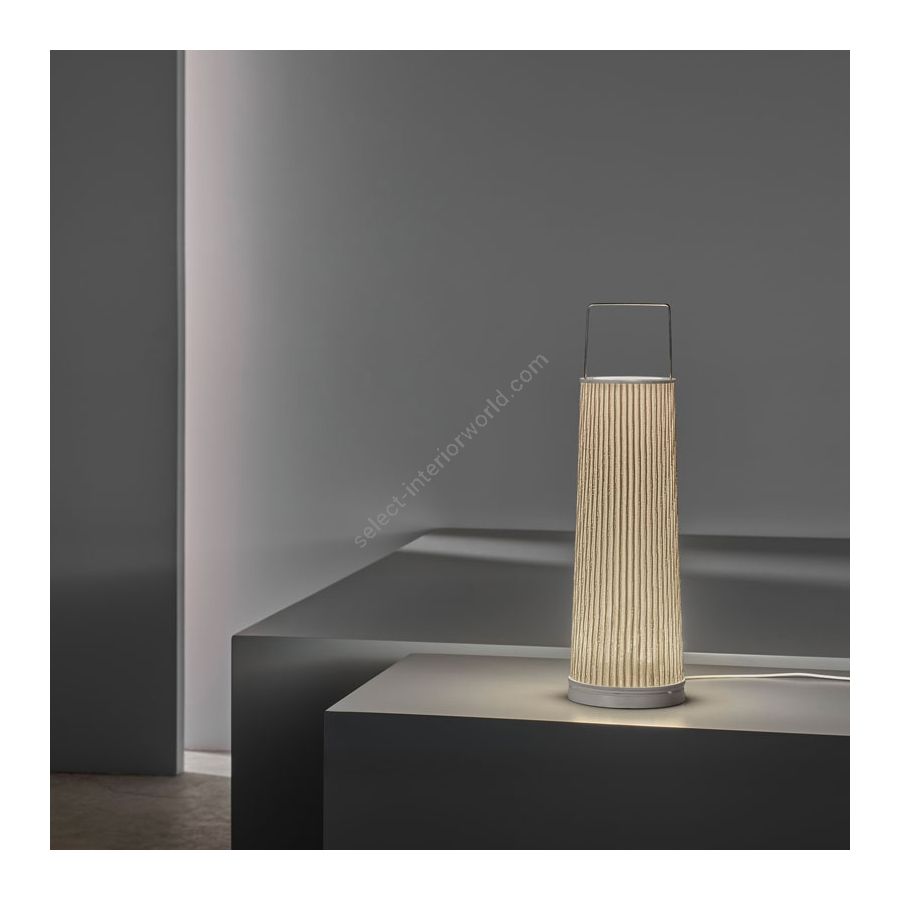 Hipatia portable LED lamp made of painted stainless steel mesh. This compact and small design has a battery with autonomy of 6 hours.