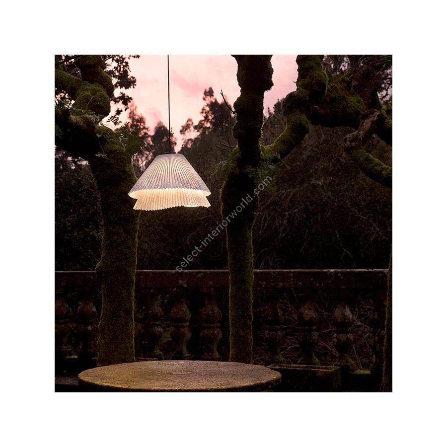 empo is a pendant lamp collection made with painted stainless steel mesh. This material, crafted in fine pleats, forms two overlapped layers that create two different lamps full of dynamism. Andante and Vivace, two liveliness shapes born from one. The representation of two instants generated by the same movement at a different tempo.