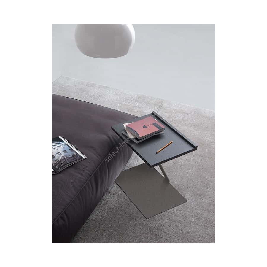 It is a versatile object that can be used as a base for many domestic situations, with its design based on a wooden top resting on a solid metalsupport available in different finishes and designed to match any sofa while taking up as little space as possible.