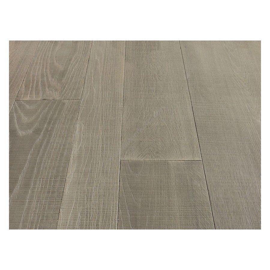 Agave is a varnished gray stained oak parquet, brushed and saw cut.