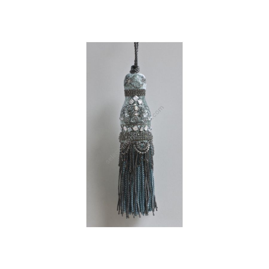 The Bianca key tassel is an opulent design of jewelled bands, crowns and swags in silver thread and delicately embroidered crystals.