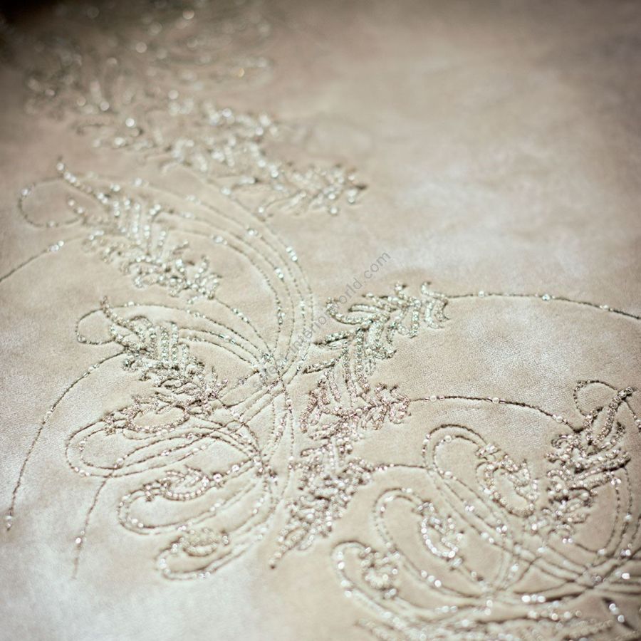Augusta is a delicate tracery of silver thread and crystals, creating a fern-like leading edge design.