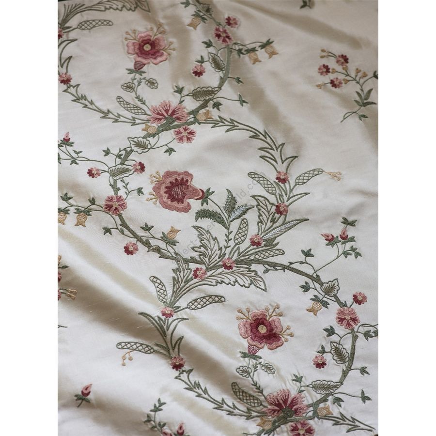 Octavia is a pretty pattern reminiscent of an English countryside. Cornflowers and Rosehips grow from circular structures around the leading edge of this design, while the inner pattern contains scattered flower heads and buds. This design was based on an English Rococo dress silk from the 18th century.
