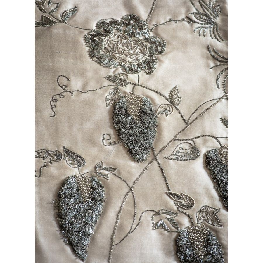Our Couture fabrics are bespoke and hand embroidered to order. They can be created in fine gold or silver silk thread and embellished with freshwater pearls and semi-precious stones. Each pattern can be coloured and designed to fit your needs. We can embroider onto any background fabric including: silk, velvet, organza and leather.