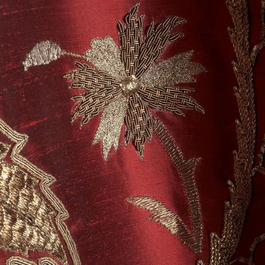 Salome is a dramatic, large scale design with a strong Ottoman influence. It displays a range of very fine embroidery techniques with intricate detail and texture.