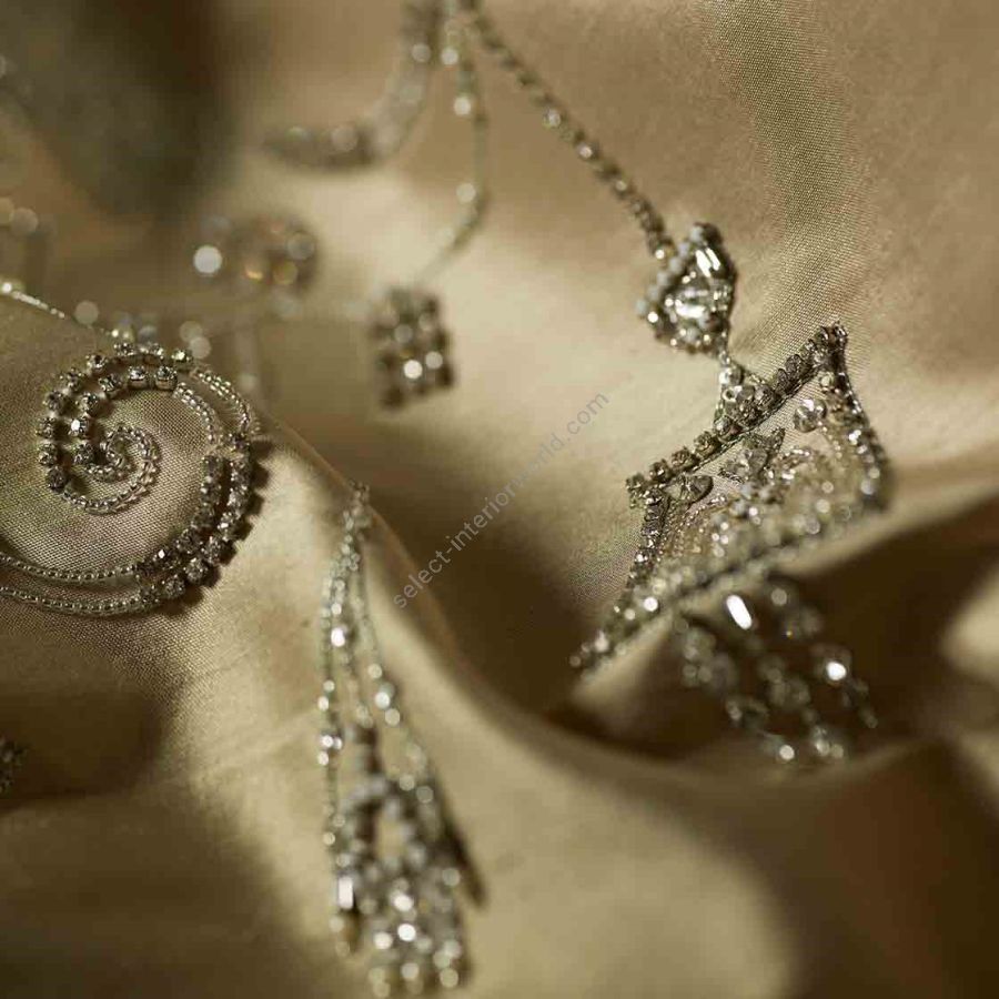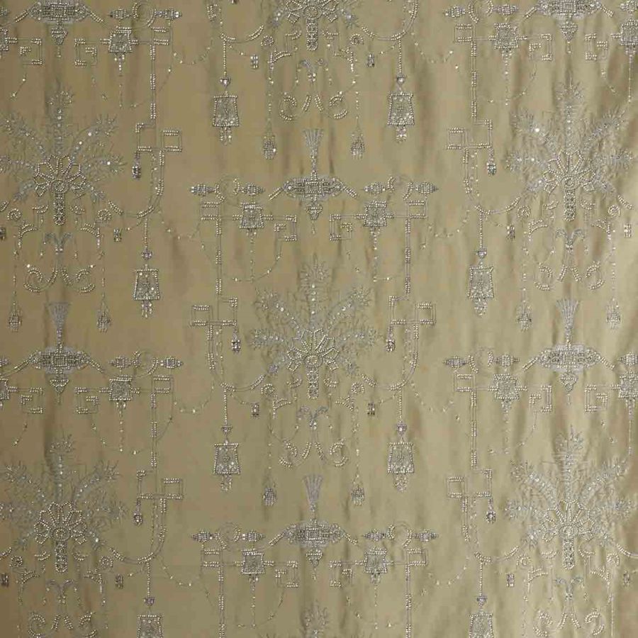 Our Couture fabrics are bespoke and hand embroidered to order. They can be created in fine gold or silver silk thread and embellished with freshwater pearls and semi-precious stones. Each pattern can be coloured and designed to fit your needs. We can embroider onto any background fabric including: silk, velvet, organza and leather