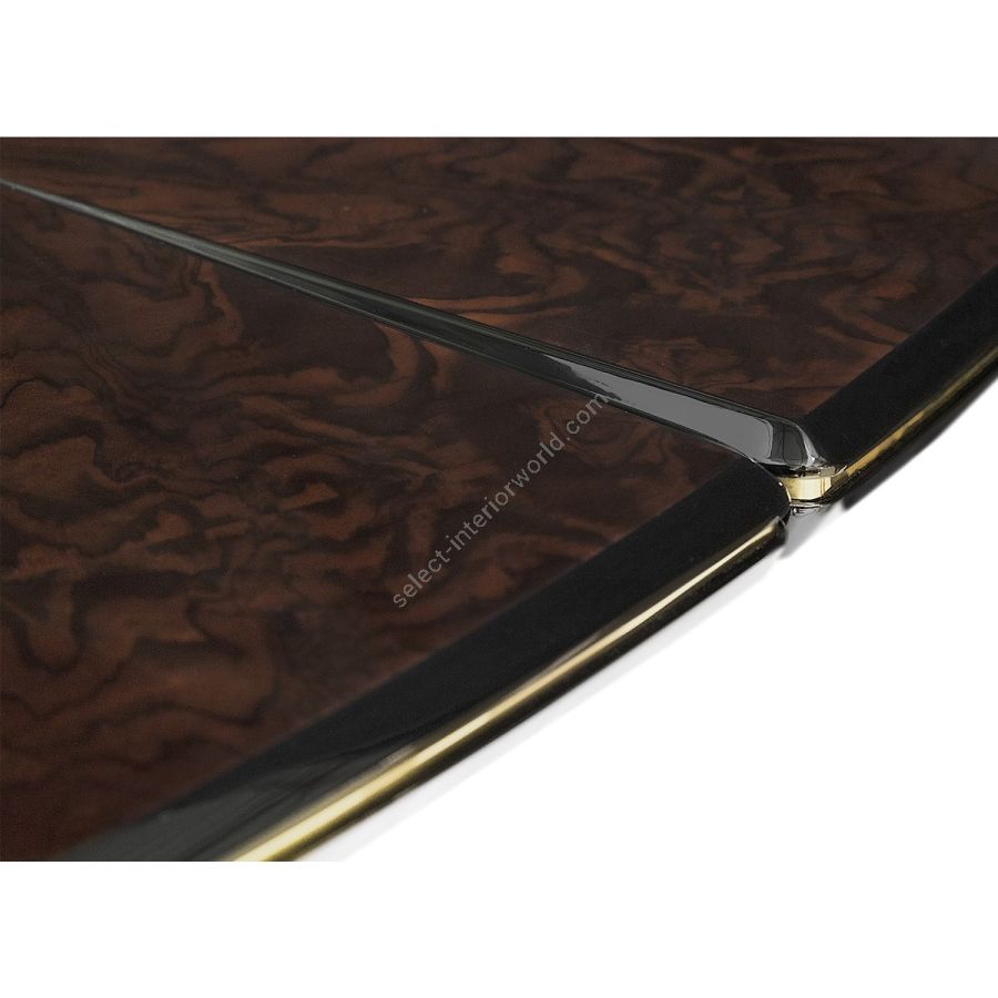 The Beyond Dining Table features distinctive details that delicately combine hand-worked wood with touches of polished brass, creating a warm and golden tone on its polished surface. Created during a moment of inspiration, this modern luxury dining table serves as the perfect focal point for any dining setting.