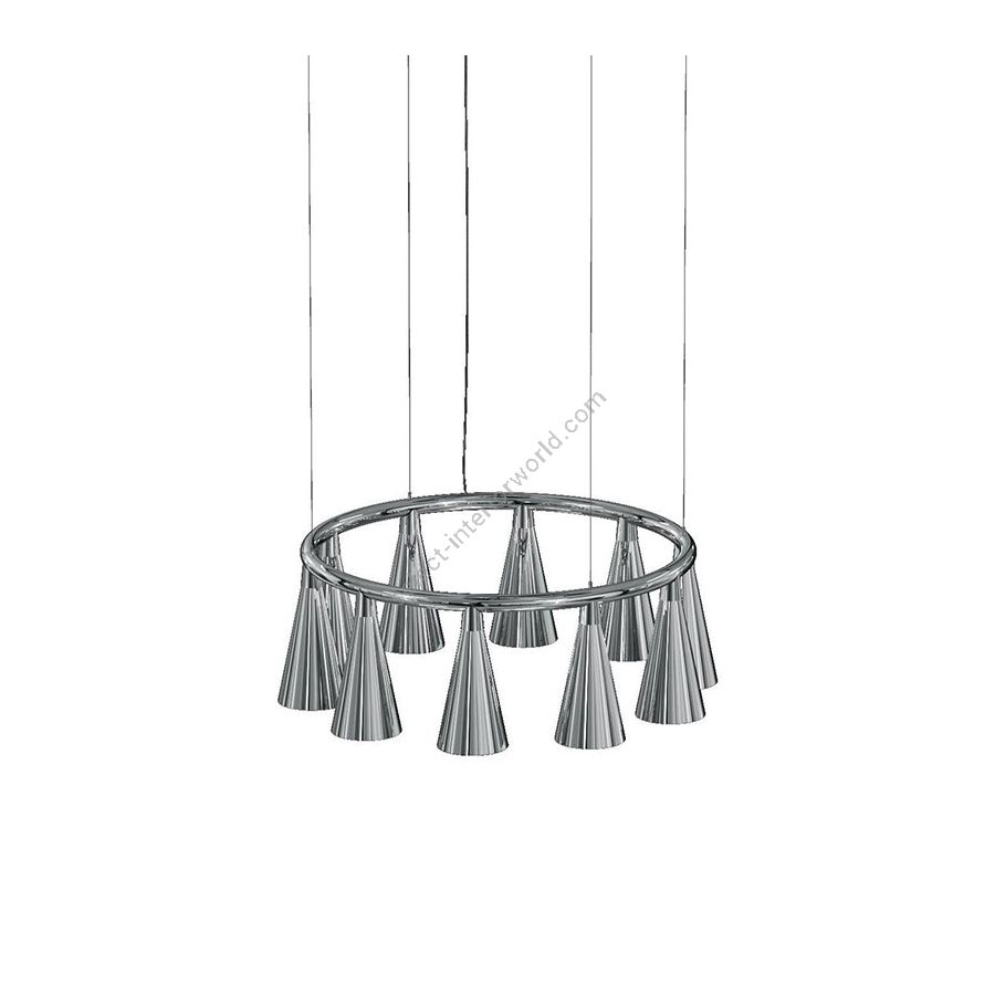 Chandelier with chrome brass structure and chrome lacquered blown glass (ip20).