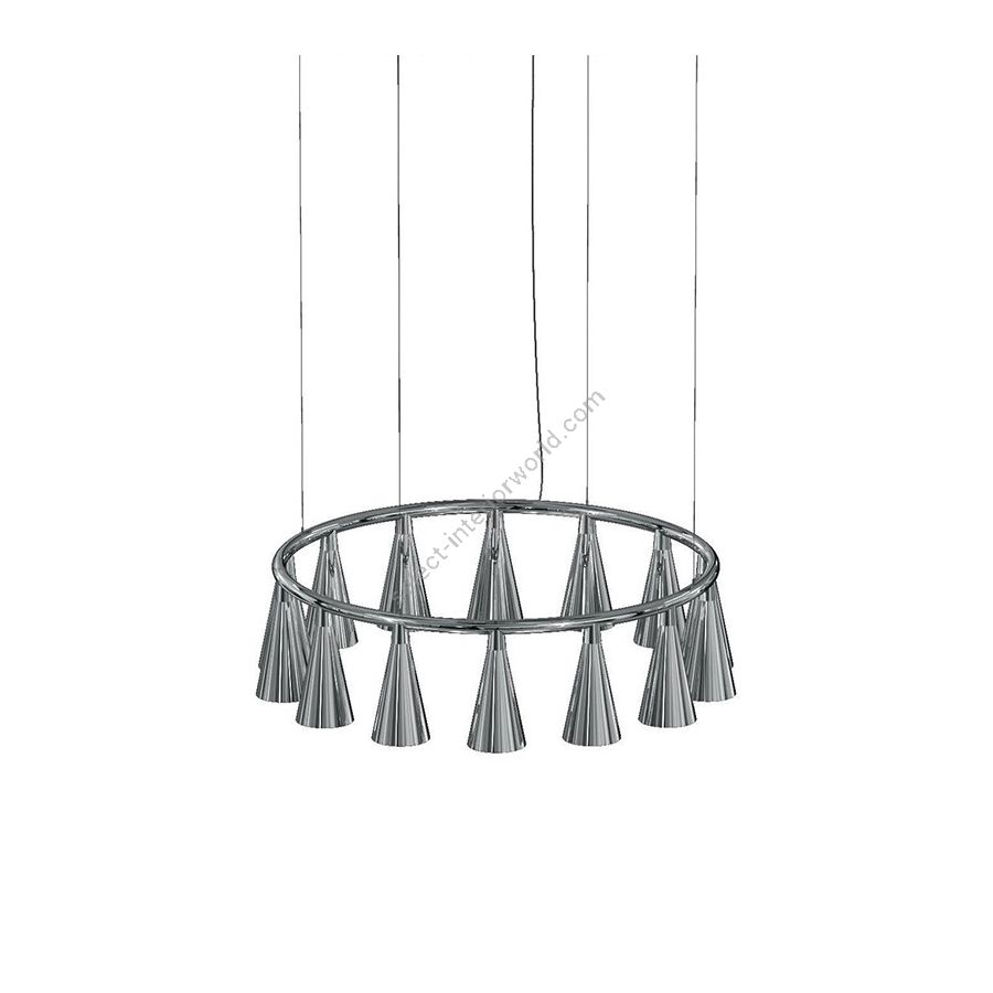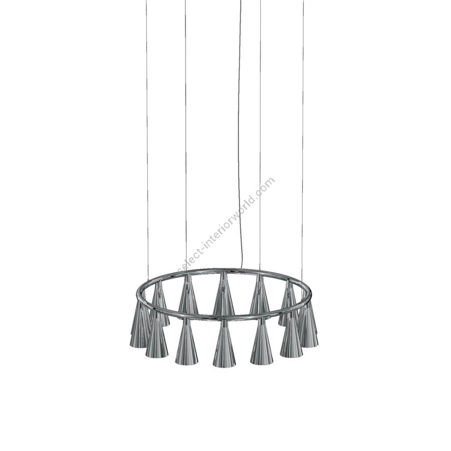 Chandelier with chrome brass structure and chrome lacquered blown glass (ip20).