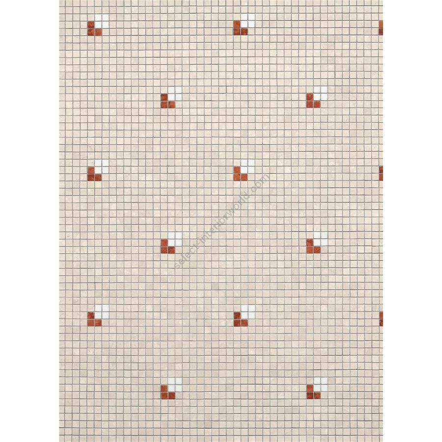 The decorative patterns in the marmosaico collection are made with honed marble mosaic tesserae, measuring 1,5x1,5 cm, with matt finish.