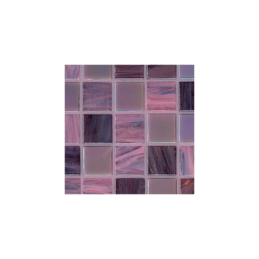 Glass mosaic composed of beveled, randomly arranged square tesserae.