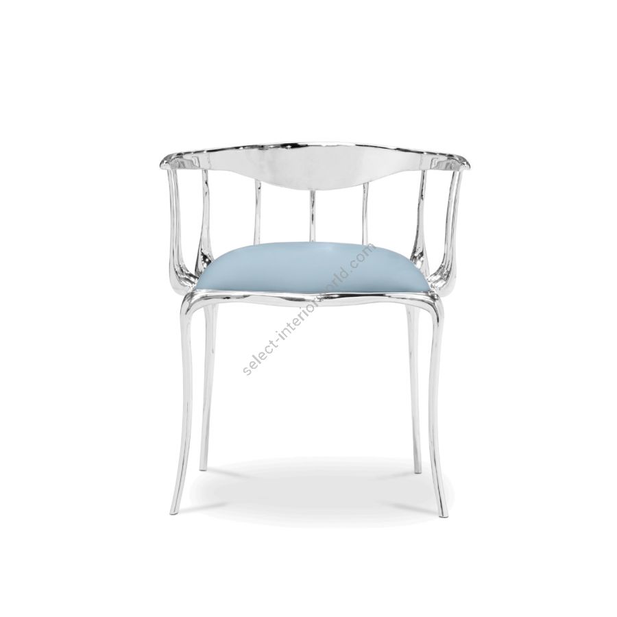 The Nº11 chair takes the cue from key figures of the surrealist movement such as Salvador Dali and René Magritte and turns their work into a subtle art furniture piece. Made from gold plated solid cast brass with a varnish finish, this accent chair features a large bow back rail that’s held by languid spindles that drip solid metal from the apron up, while the legs are lavishly curved creating a visual effect that defies the laws of physics. The seat is upholstered in fine velvet and is available in different colors to better suit any upscale dining or living room. Combining an avant-garde approach with classic and emblematic lines, Nº 11 features remarkable craftsmanship and embodies the richest metalwork techniques from which skilled artisans built their reputation throughout the years. A statement chair to enhance a glamorous experience and memorable moments.