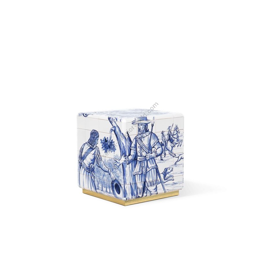 The Heritage Nightstand is influenced by the Azulejo, a landmark in Portuguese culture. Originating from the Arabic word zellige, this traditional hand painted tile that can be found all over the country, from churches, to houses and gardens and was often used to tell tales of Portuguese history. Superb for any graceful ambience, this unique nightstand references the importance of history, our ancestors and heritage, with a touch of blue or sepia glamour, for cold or warmer looks.