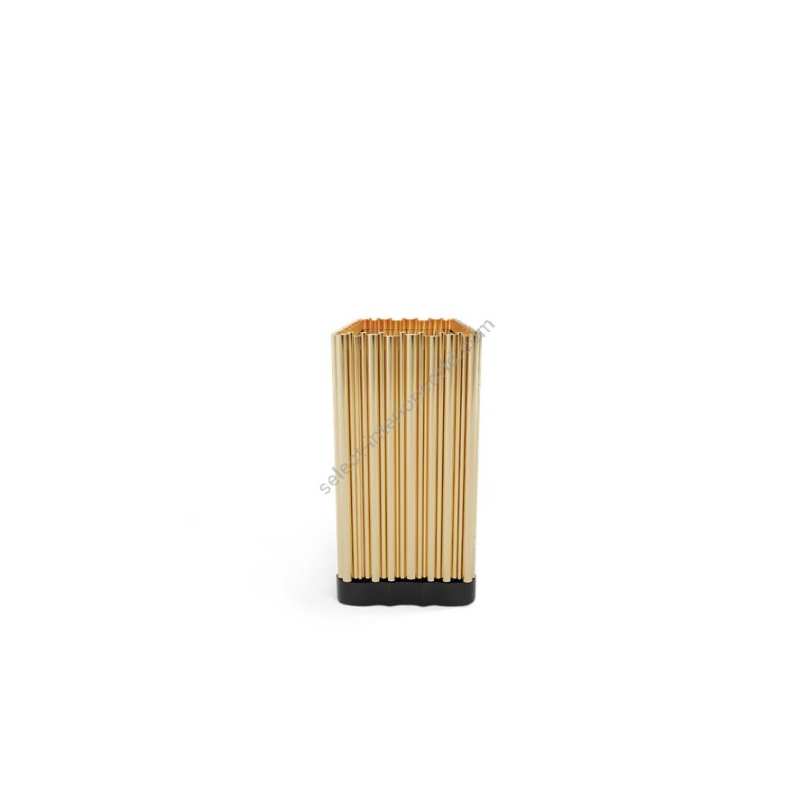 This buffet presents a strong wood body enveloped in a tubular cluster of either gold or nickel plated brass tubes, where each door is carefully welded with cutting edge-technology. A harmonious artful juxtaposition that adds rhythm and sophistication to any space. Symphony is wrapped up by a strong black lacquered base, while the top is finished in opaque black glass.