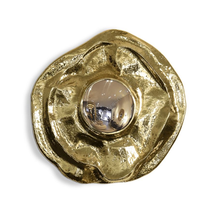 This large wall mirror offers a tribute to the historical city of Angra do Heroísmo in Azores, Portugal. The seductive and elegant mirror, it's outstanding in its shape and curved design. The polished brass creates a superb accent providing a glamorous design.