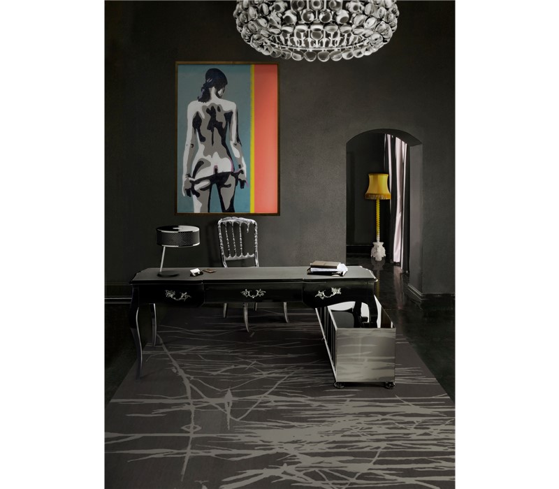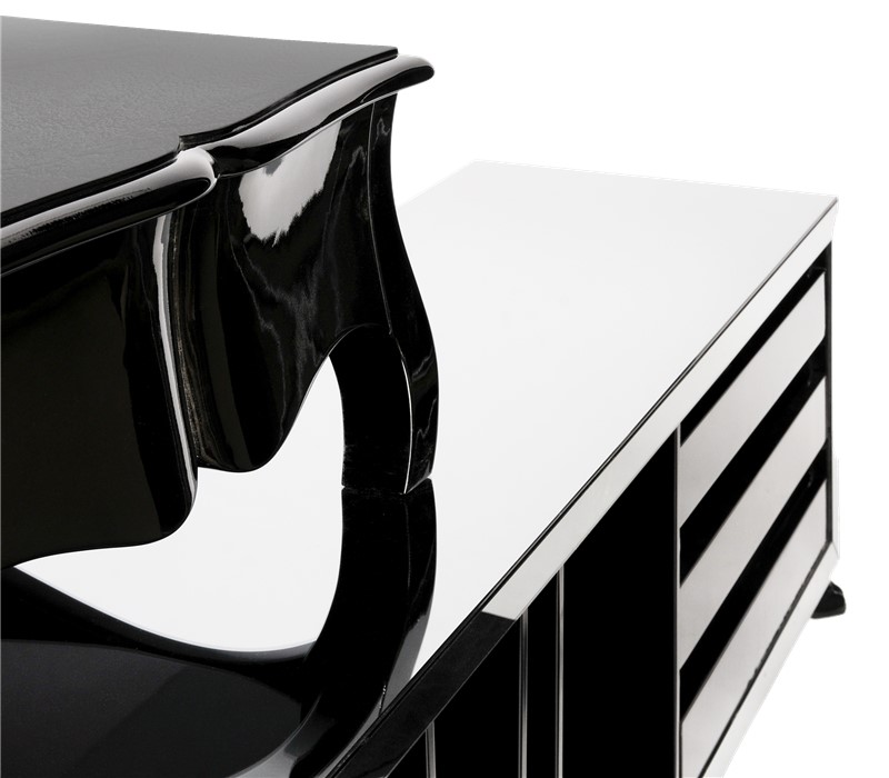 The Boulevard modern desk is a highly desirable classical piece. Perfect for your home office, or for a private space in your modern house, where you wish to register your thoughts and your ideas. Crafted from solid wood, this writing desk features a black leather top and three drawers with a classic cast brass handle finished in black. The attached drawer file unit has ample storage and is covered in a smoked mirror.