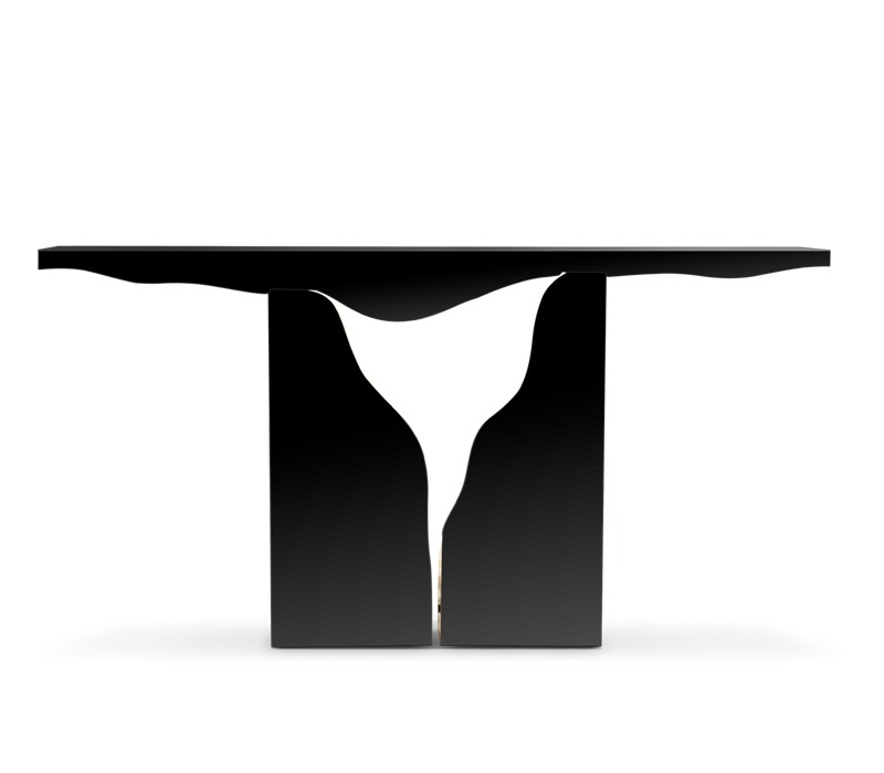 Lapiaz console takes exceptional craftsmanship and design to a new realm. With the inside finished in polished brass, and an exterior finished in a sharp glossy black lacquer, its organic features are achieved through the manual fitting of the brass sheet, conveying both dynamics and elegance to bring a new contemporary verve into refined interiors. Finding beauty in the most unexpected places, this contemporary console is inspired by authentic karst formations created by surface dissolution, freezing or thawing of dolomite rocks. A functional artwork piece born from cold and freshly cracked to showing off the world rich, golden details.
