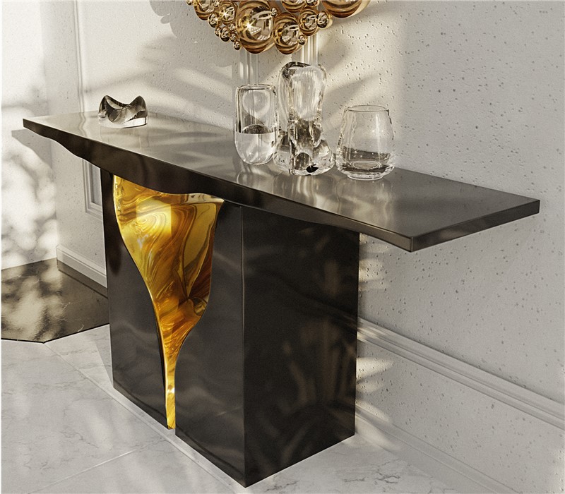 Black Lacquered Veneer exterior with hammered polished interior details.