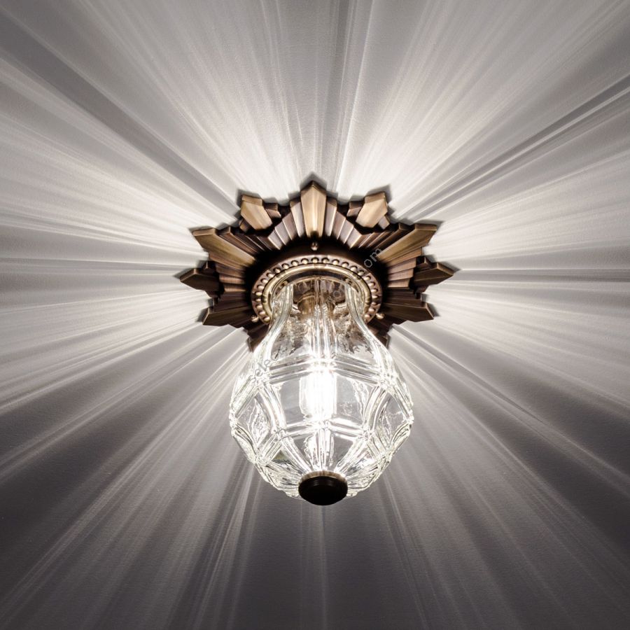 Originally used in San Francisco’s War Memorial Opera House, the Opera House has an elaborately faceted glass shade that creates a charming effect on the surrounding ceiling. While the concept for the Opera House light might seem familiar, both the glass and the ceiling plate on this fixture are proprietary pieces.