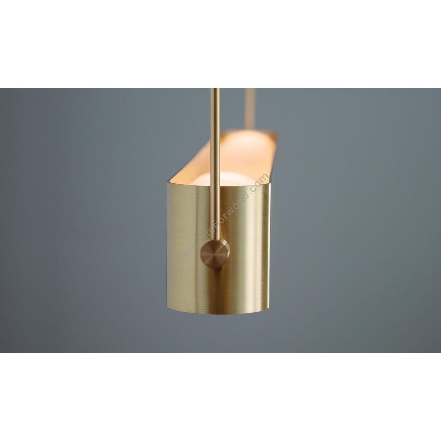 A beautiful linear hand-finished loop of brass that gently cradles a curvilinear white cased glass diffuser at either end. Patent Designs: D948,772.