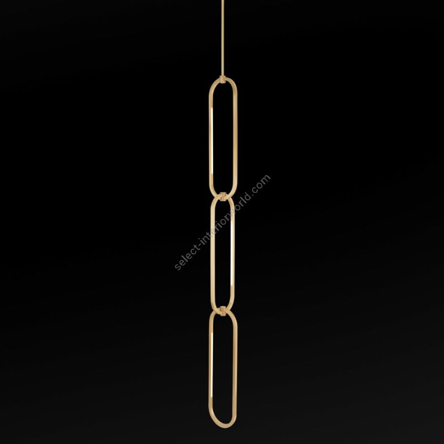 Square tubes of hand-finished brass form obround loops connected in a chain-link which illuminates from within satin white diffusers. A thin profile brings an airiness to this elegant design. Made-to-order by hand in Colorado.