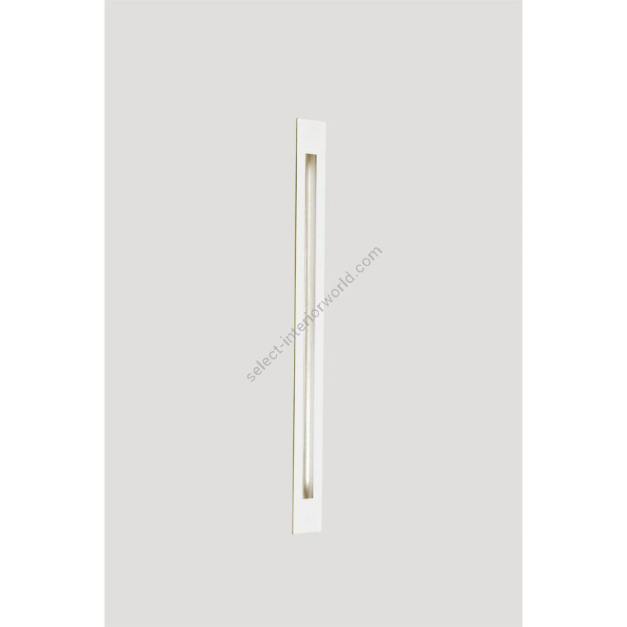 The linear, in-wall Sunbeam Sconce features a narrow channel that runs lengthwise down its middle. The inner reflector is available in gold or white gold paint, or white or yellow gold leaf, and the outer frame is available in white primer so it can be painted to match the wall color. With its subtle sparkle, a row of these dimmable sconces lining a corridor would make a big impact. Recessed mount. Can be mounted vertical or horizontal.
