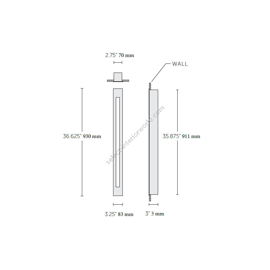 Backbox: inch.: 2¾" W x 35⅞" H x 3" D ; 7 cm x 91.1 cm x 7.6 cm