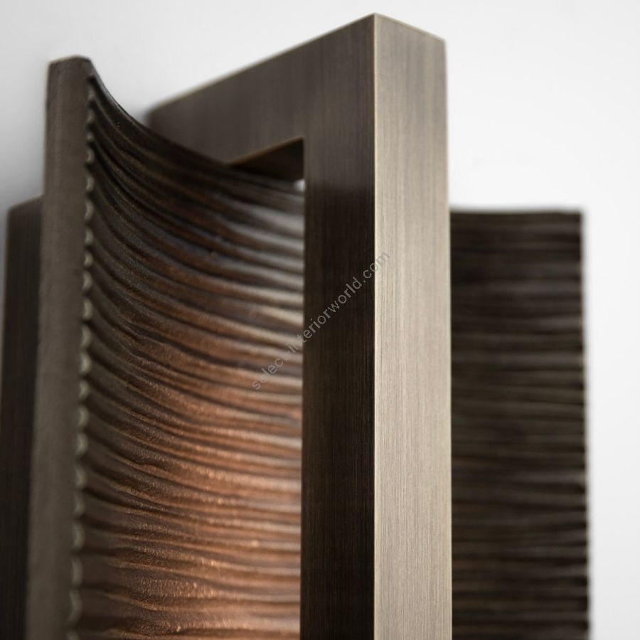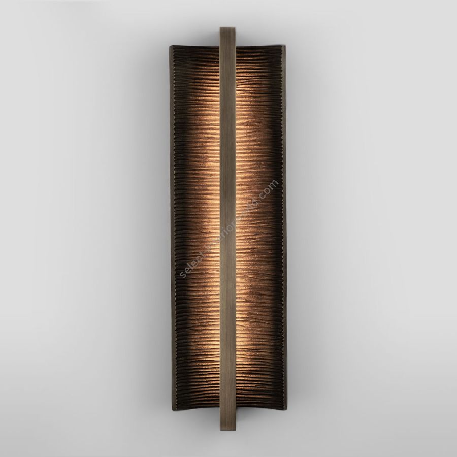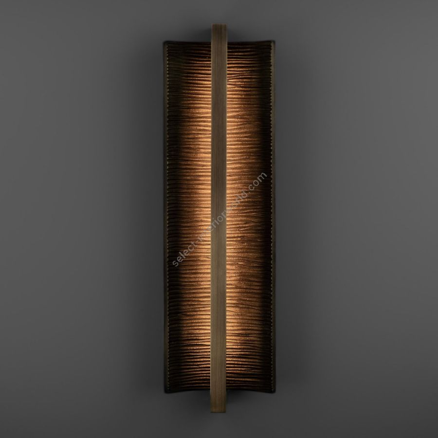 Custom-designed for Roger Thomas’ final hotel project in Boston which wraps up a four-decade-long design career. The Exterior version of the oversized 24-inch-tall ADA sconce combines a precisely machined brass arm that hides the LED light source and rough-hewn, hand-cast brass backplate handmade in Chicago
