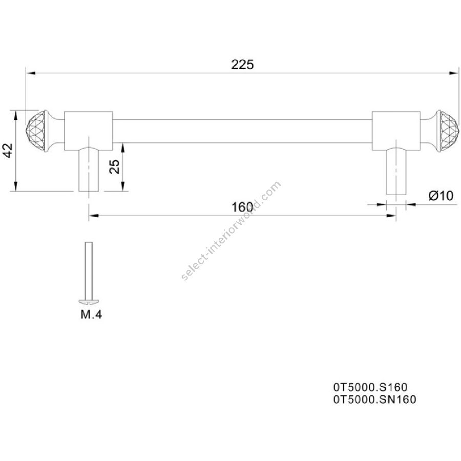 - Bronces Mestre / Furniture Handles / Clasica with black Swarovski crystal 160mm between centers 0T5000.SN160.30