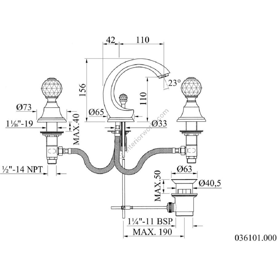 - Bronces Mestre / Washbasin Fittings / Three holes basin set with Swarovski crystal 036101.000.00