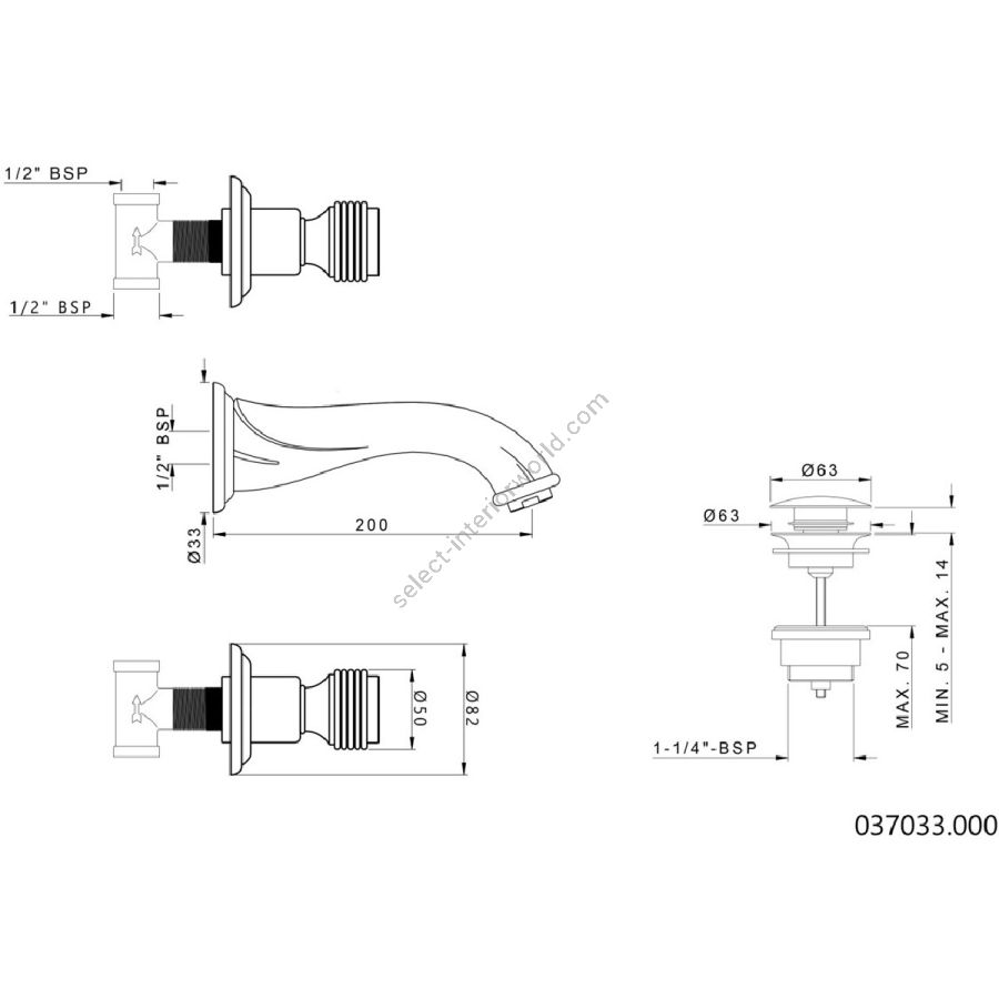 Bronces Mestre / Washbasin Fittings / Three holes wall basin set 037033.000.50