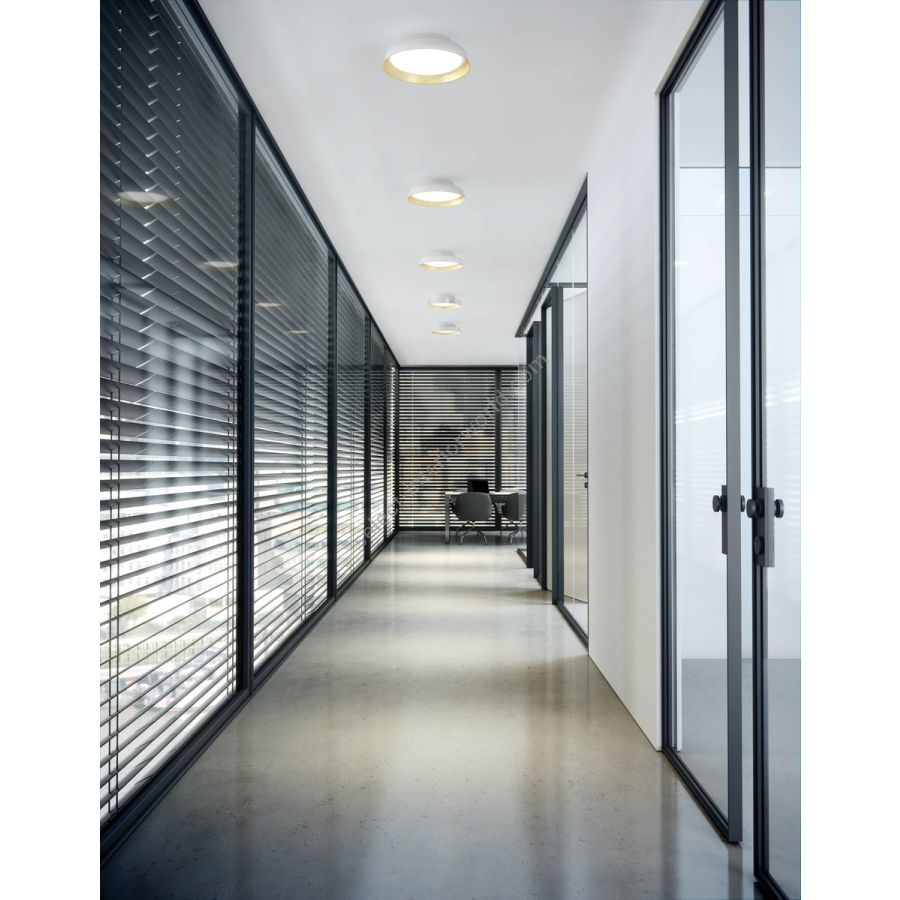 Boop!, while maintaining a sober identity, surprises with its presence and lighting quality. It is a generously sized ceiling lamp that decontextualizes an almost industrial geometry and elevates it into the realm of refinement by playing with richly nuanced colors and finishes. Presence and personality for unique spaces. Also available for outdoor/bathroom use (IP55).