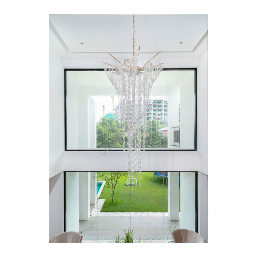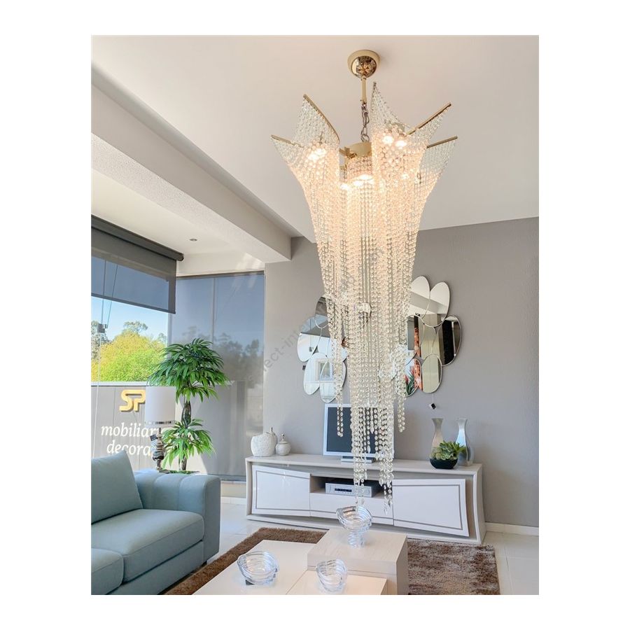 Atlantida Suspension is the perfect harmony between classical and contemporary inspiration, combining high-quality handcrafted brass and exquisite crystals with unparallel shine. Atlantida handmade lighting design is ideal for luxurious double floor staircases, elegant living rooms, exclusive entrances and halls. With its warm and elegant light, it creates a particularly pleasant atmosphere.