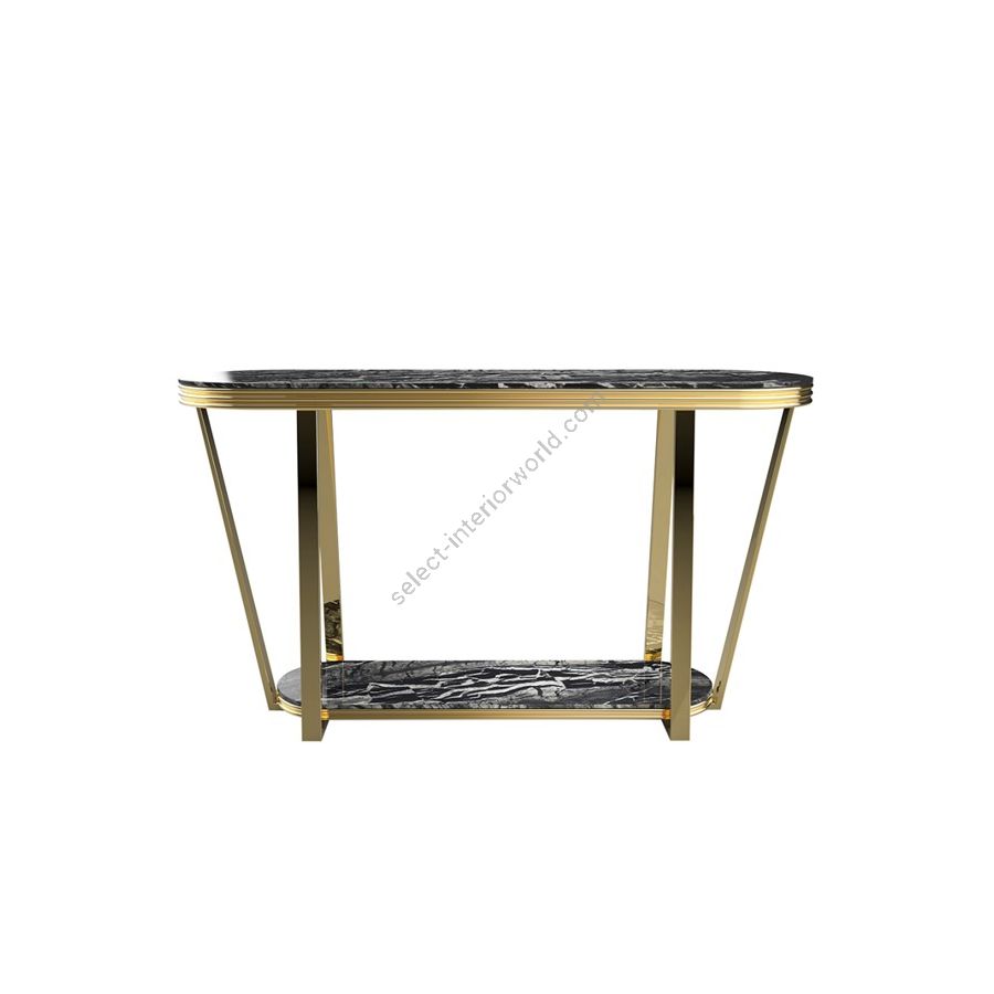 “Euphoria” symbolizes a feeling of pure happiness, a contemplative state of joy. Converting this idea into a design, the Euphoria Collection combines an elegant set of brass rings with different metal finish options on top and the bottom of the console. This contrast enhances the magnificence of the marble, conferring to the living spaces a unique touch of luxury. Gold-plated brass tubes with different diameters married with premium marble result in a subtle, delicate silhouette of the refined modern console. The elegant Euphoria console features the classic shape of a credenza – the timeless Castro design touch. Euphoria Console brass rings and legs use the same metallic finishes, thus can be bespoken in a wide range of well-aligned yet contrasting brass finishes, combining them in a unique manner to create a signature design.