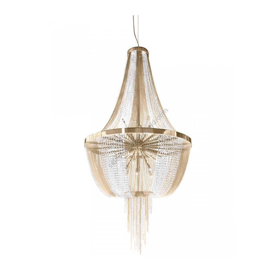 Gatsby’s powerful yet smooth lines create an organic movement of lights and shadows that suggest elegance and glamour. The sumptuous lamp handcrafted in gold plated brass, combined with beautiful crystals, will stand out in the most luxurious and exclusive interior décors.