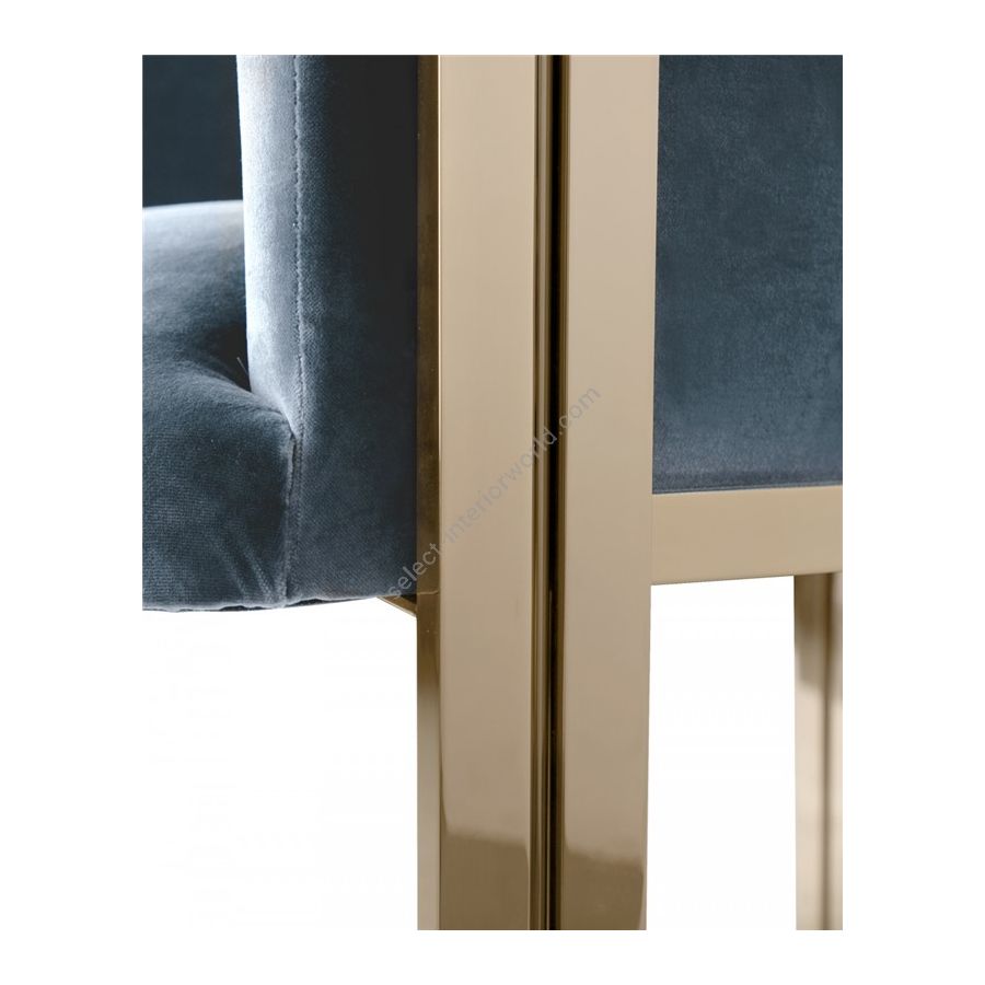 A luxurious armchair that with a refined combo of materials such as the brass that is framing the mesmerizing blue upholstery, Marie’s splendid design aims to be more than what meets the eye, having a sophisticated high-end look.