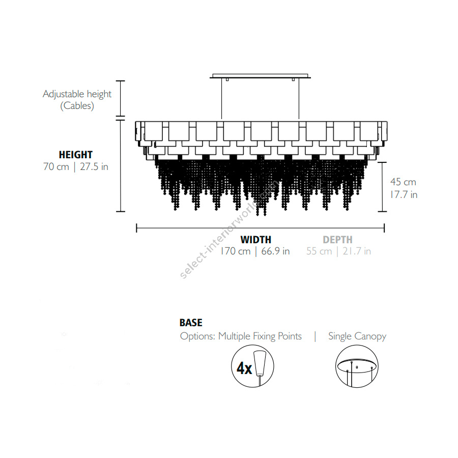 | Dimensions (HxWxD): | cm: 74x170x55 / inch: 29.13"x66.93"x21.65" |