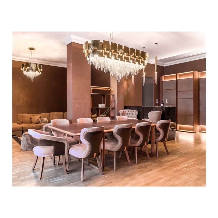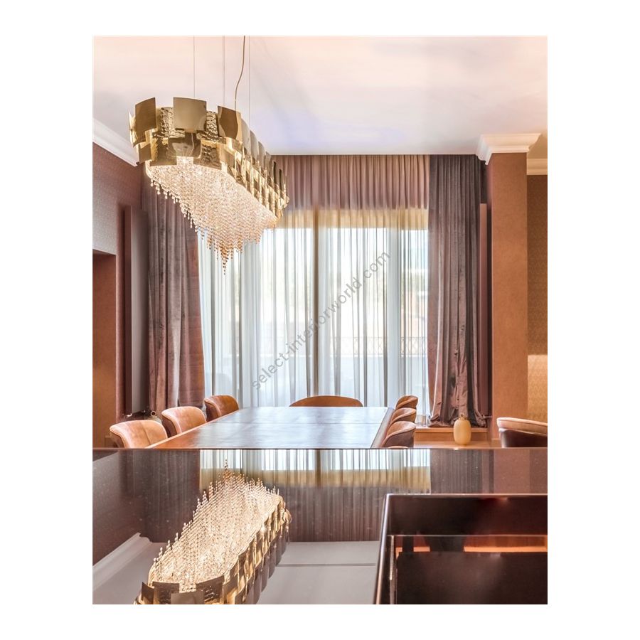 Be visually inspired by the dynamism and elegance of this unique design. It's simple geometry, paired with a combination of delicate Crystals and Brass, complement the piece with a touch of glamour and allows you to explore a new kind of energy and charm.