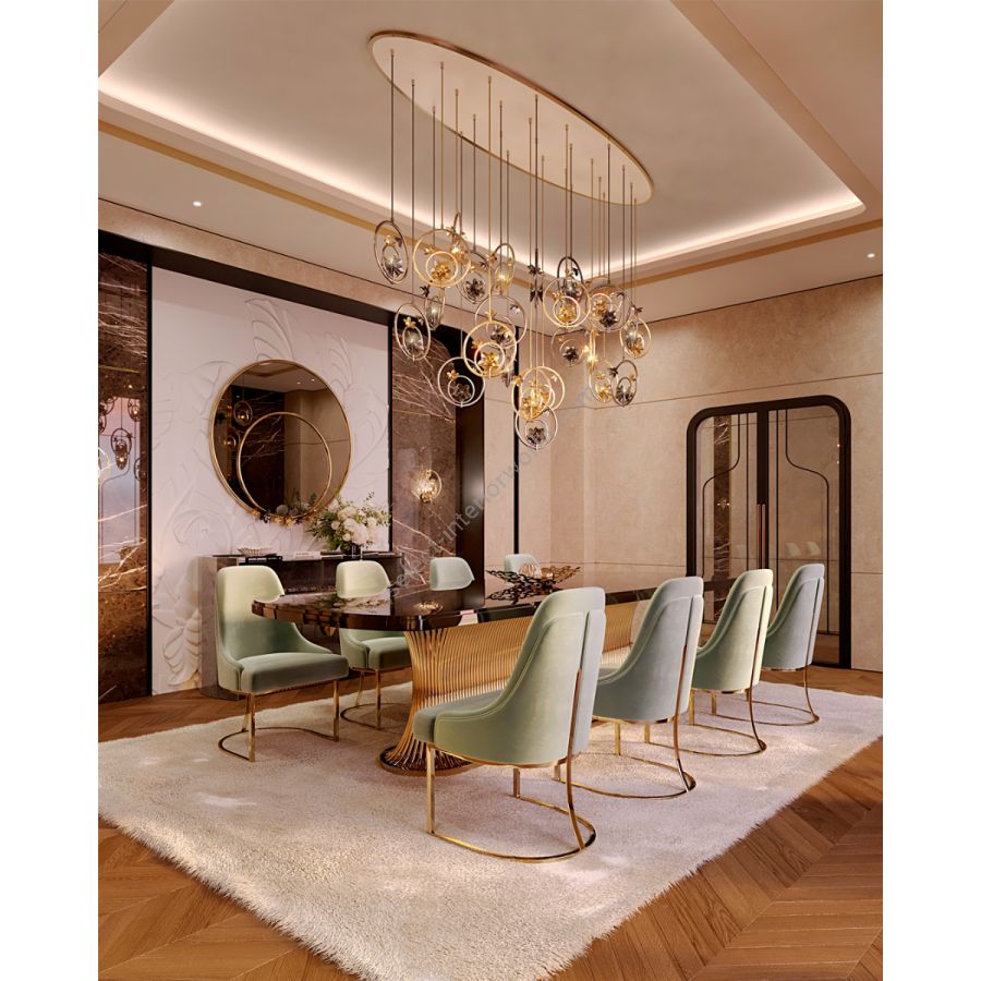 Crafted from gold-plated brass, the Botticelli Suspension radiates opulence and luxury. The warm, golden hue of the brass complements any interior space, creating a timeless ambiance that elevates the surrounding decor. With its celestial illumination, this suspension fixture casts a soft, enchanting glow that evokes the ethereal light found in Botticelli's heavenly scenes.