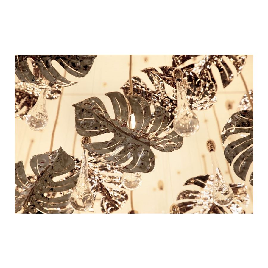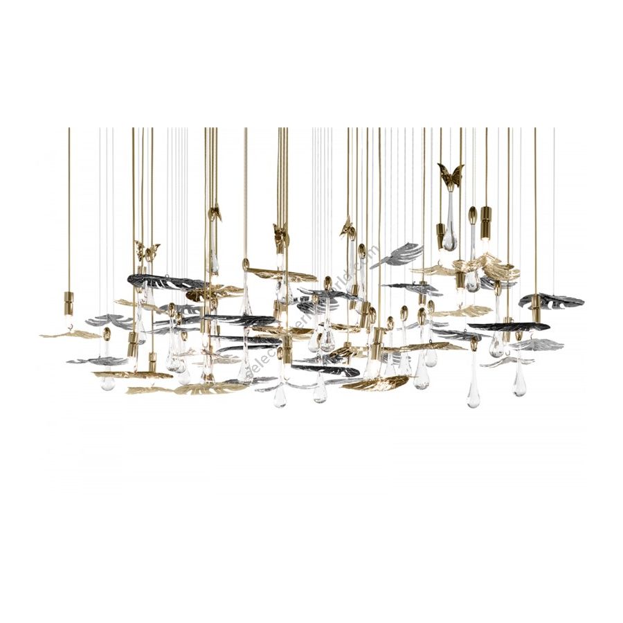 The Rainforest elegant chandelier is unparalleled in the refinement and grace it represents. The gold-plated brass coupled with clear crystal glass - applied by hand - brings a delicate charisma that resembles nature in full bloom. A broad-leaved masterpiece of modern lighting design along with falling raindrops and butterflies takes you to remote spaces and the open sky. A dreamy lighting fixture creates an exceptional ambiance to the classy interiors.