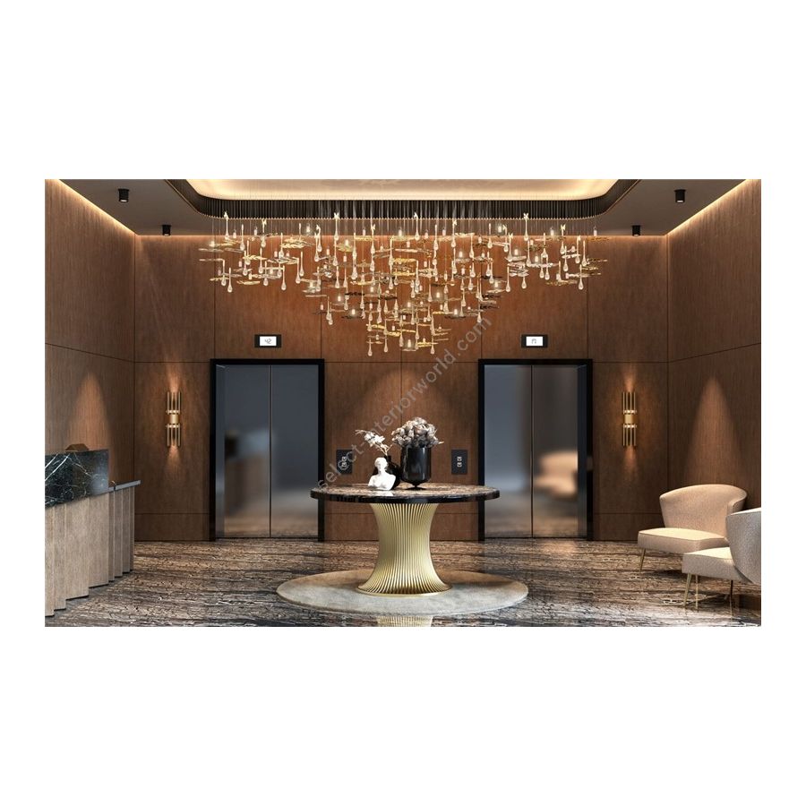A luxury custom-designed collection was made to be featured in the most sophisticated projects organically. The sizes and distribution of the elements can be naturally customizable. This handmade suspension lamp is perfect for spacious living rooms, dining rooms, or hallways with high ceilings, fitting in a vast variety of decors. The exquisite light dispersion of this gracious lamp will make it the central piece for all luxury houses and help achieve the desired timeless chic. This beautiful suspension lamp is the right choice for a mid-century modern, modern classic, or art deco interior style.