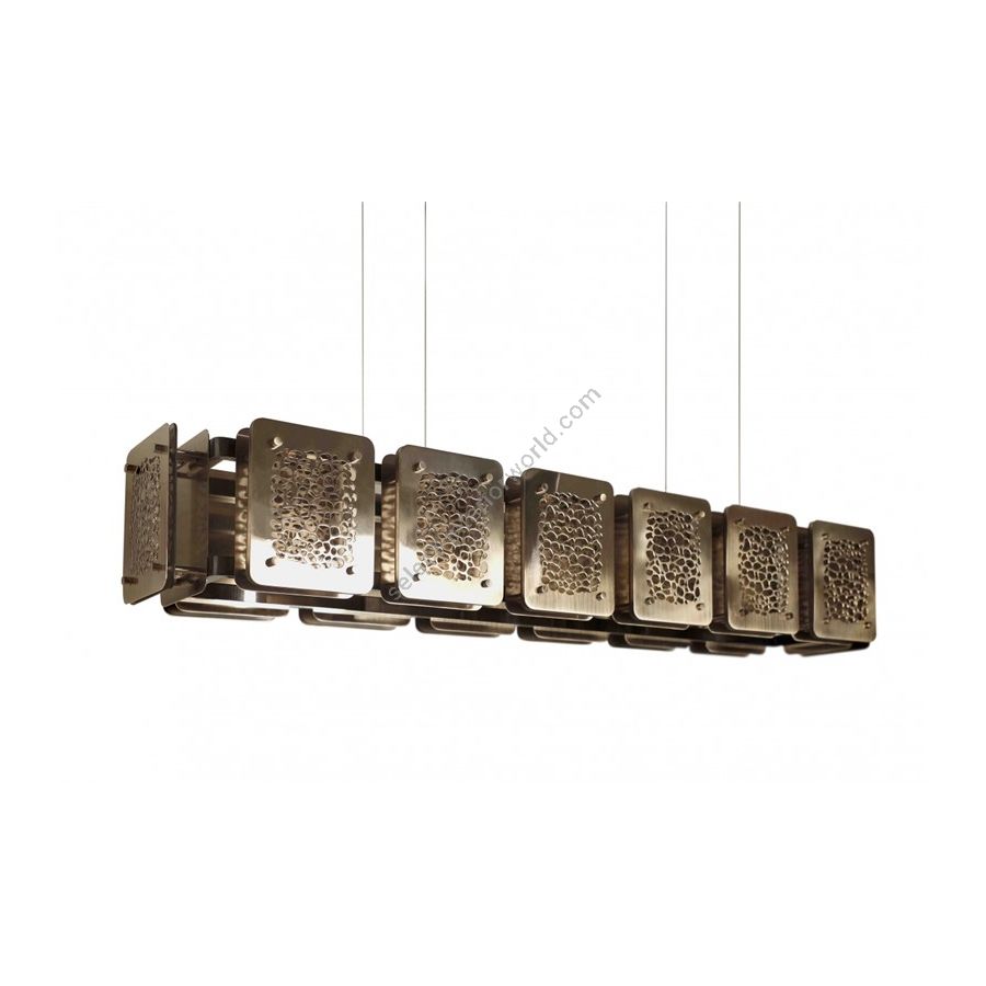 The collection arose from exploring new worlds of inspiration for creative and unique designs. Ignited by the concept of journey, the Safari Collection embraces the aesthetic spirit of the savage animal world, unexplored and enigmatic, enticing atmosphere of serenity and midday summer heat of Savannah. Bronze and earthy tones bring the wild into high-class décor. A signature lighting design delivers a fresh approach to luxury and results in a refined retreat for every demanding interior. This majestic chandelier was designed to be contemplated and harmoniously allied to an elegant composition with a chair alongside wall light from the same Collection. Safari suspension is the newest addition to the Castro iconic designs.