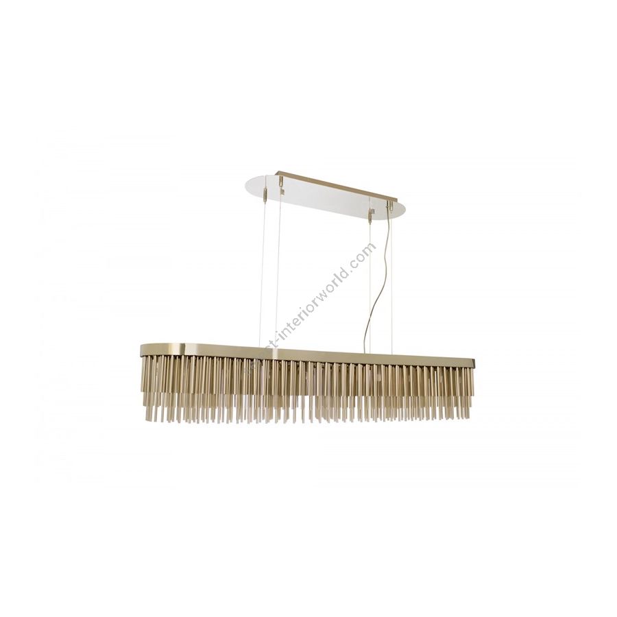 This piece was conceived to be distinctive and stand out for its design, becoming the perfect fit for curated interiors that combine a diversity of styles. This elegant suspension features long gold plated brass tubes that give the design a whole exclusive and deluxe look, setting another level by its distinctive appearance. This recipe of rich materials and sleek lines inspired by art-deco architecture make the Streamline suspension desirable.