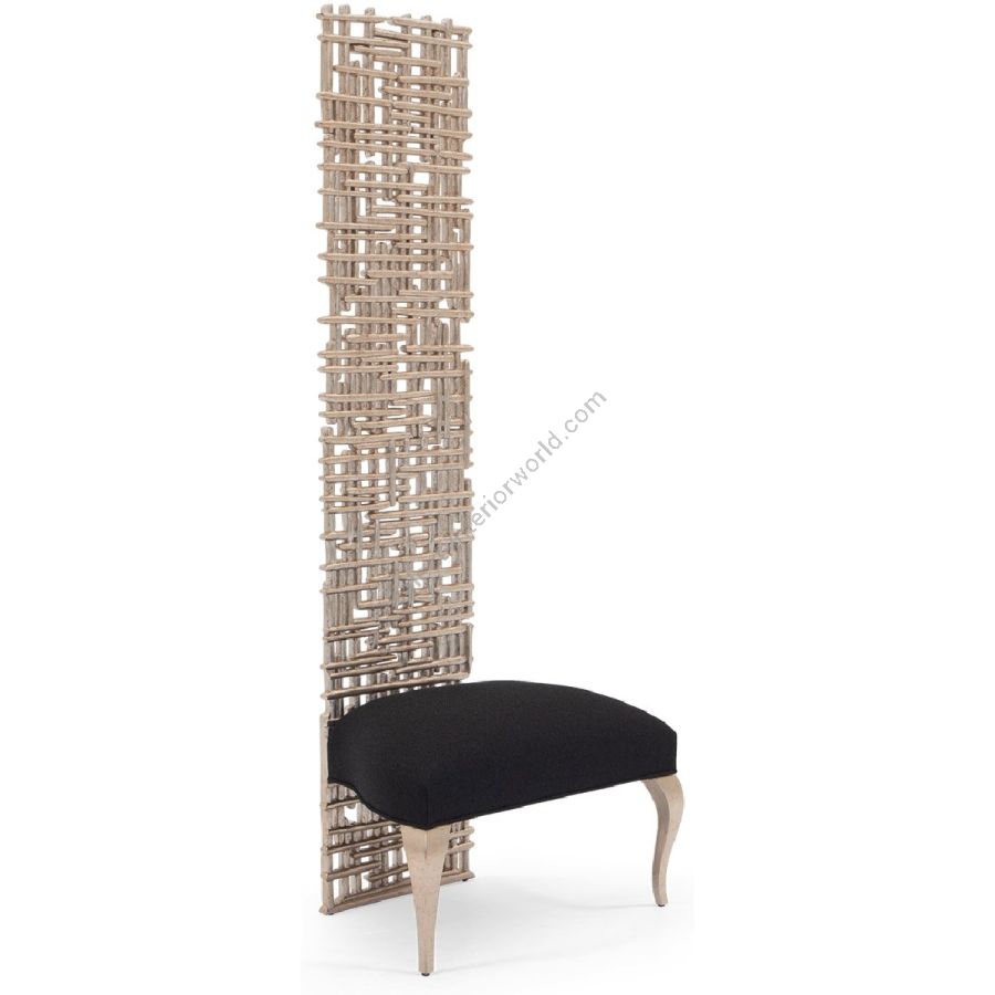 A spectacular statement piece, this palatial chair is painstakingly hand carved from solid certified mahogany and features a straight back in the form of a ‘twig grid’ and simple elegant seat with saber legs.