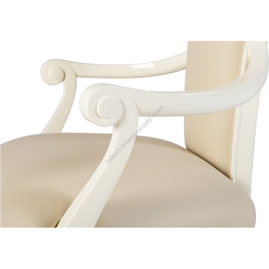 A tall, slim, tapered back dining chair with hand-carved scroll, enhanced further by flowing cabriole legs and the signature 'Chris-Cross' rear facing legs. Also available without arms (30-0008).